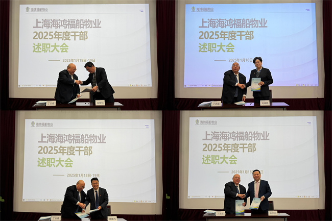 1月18日至19日,海鴻福船物業(yè)在江南造船大廈會議室隆重舉行2025年度干部述職大會。公司各職能部門、各地分子公司負責人以及各項目管理干部齊聚一堂,部分埠外項目負責人也通過線上視頻直播參加了會議。本次會議全面總結2024年度工作成果,科學謀劃2025年發(fā)展藍圖。